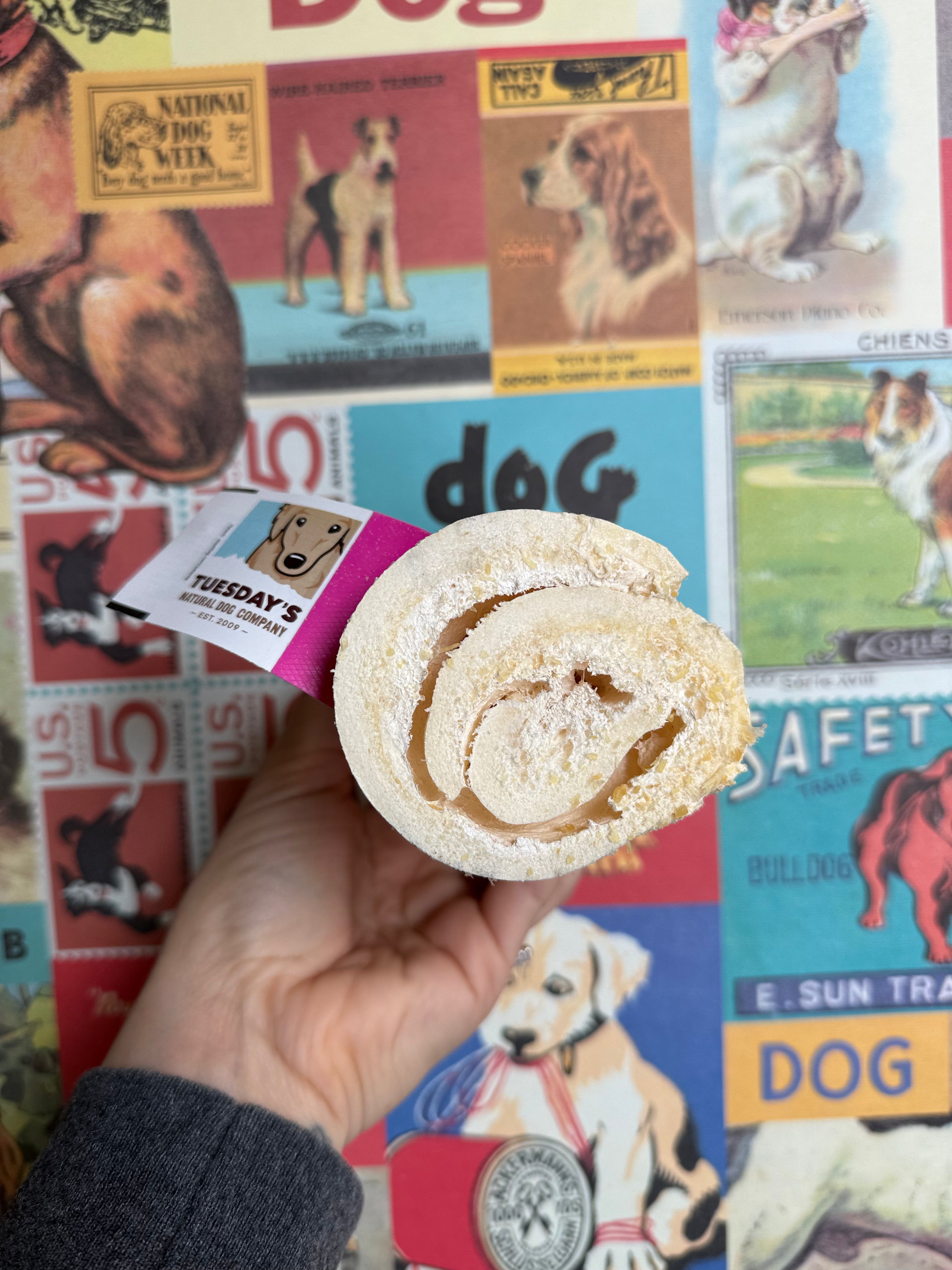 Please supervise your dog while they are enjoying this treat. If your dog usually swallows pieces whole, take away the last little bit of the treat when they are almost done with it.