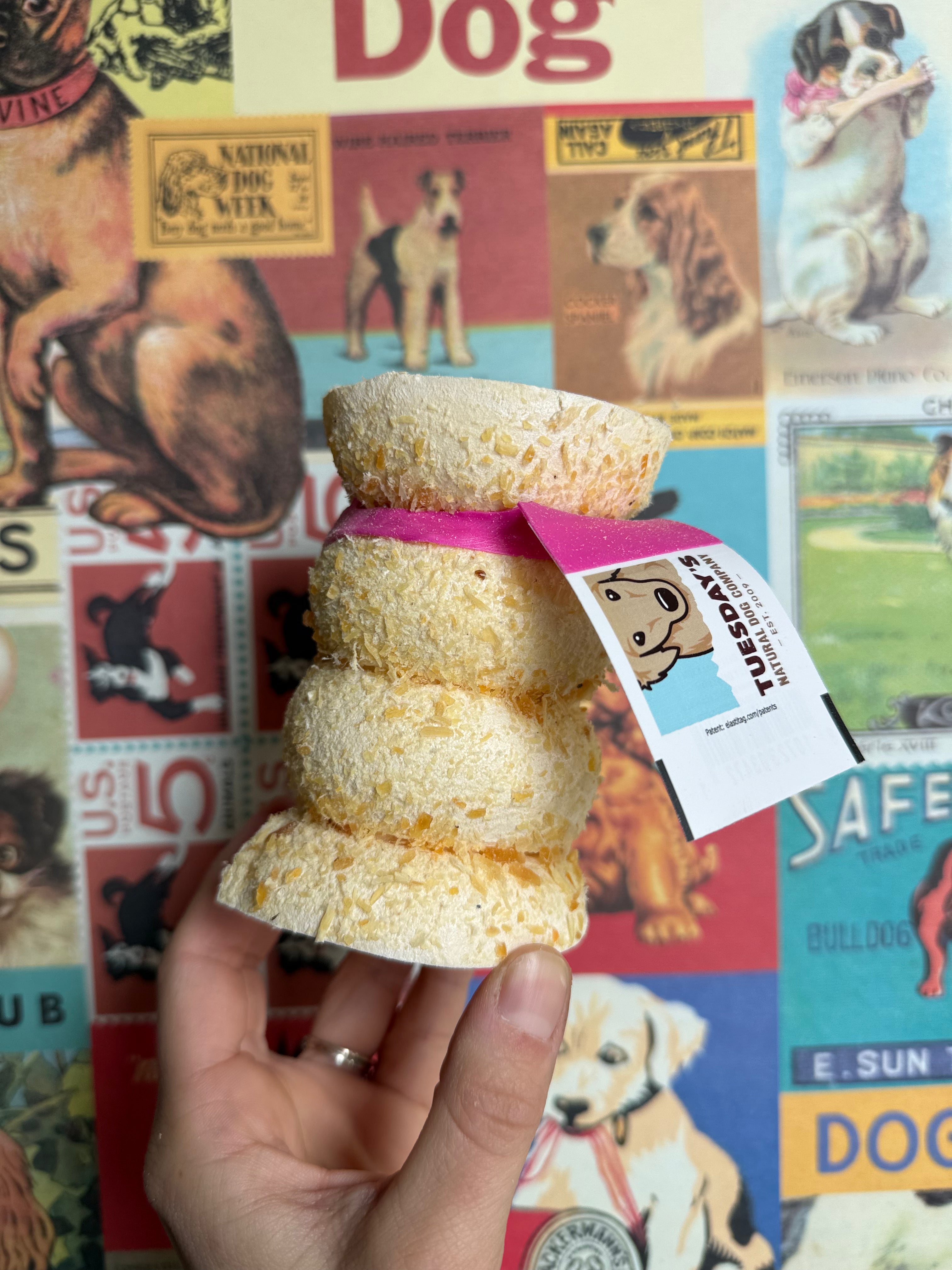 Chew Meter: Tough. This chew starts out firm and breaks down into a softer and chewy texture as it's being consumed.