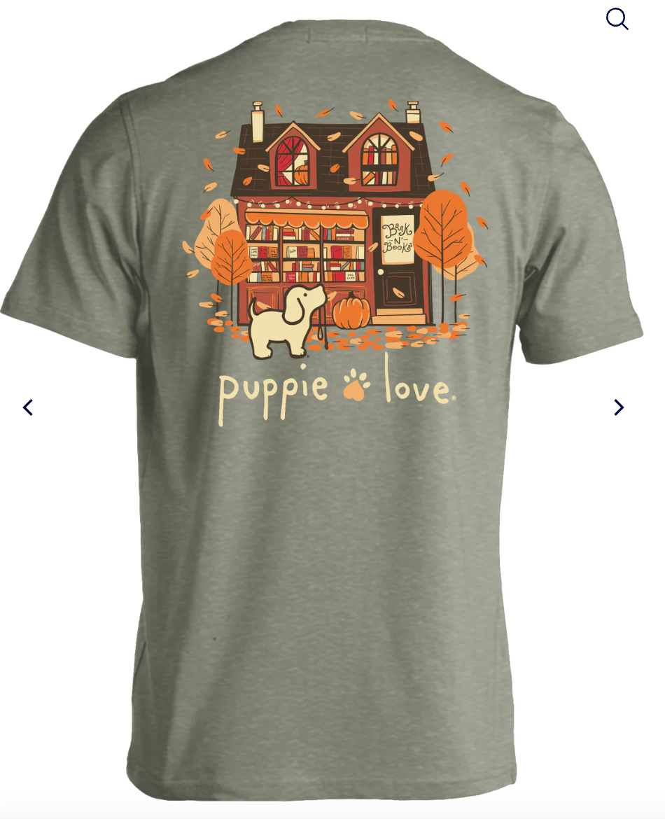 Puppie Love Fall Book Lover Tee - Small is backordered and will ship as soon as it is back in stock.