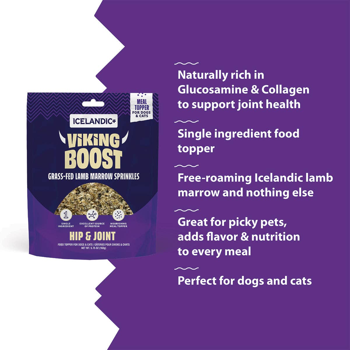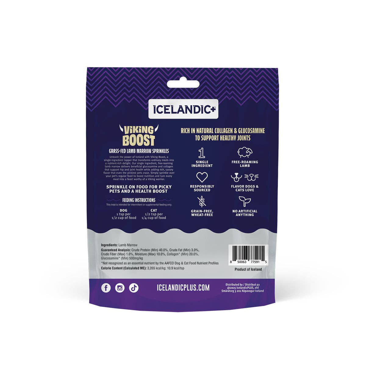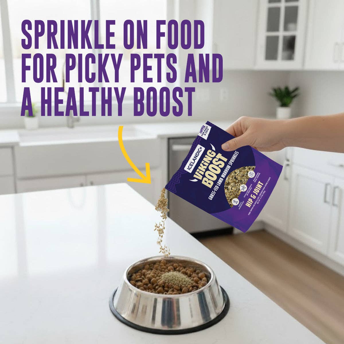 Grass-Fed Lamb Marrow Sprinkles for Hip & Joint support are a simple, powerful way to upgrade your pet’s daily meals. Unleash the power of Iceland with Viking Boost, a single-ingredient meal topper made from grass-fed lamb marrow to support hips, joints, and everyday movement in dogs and cats.