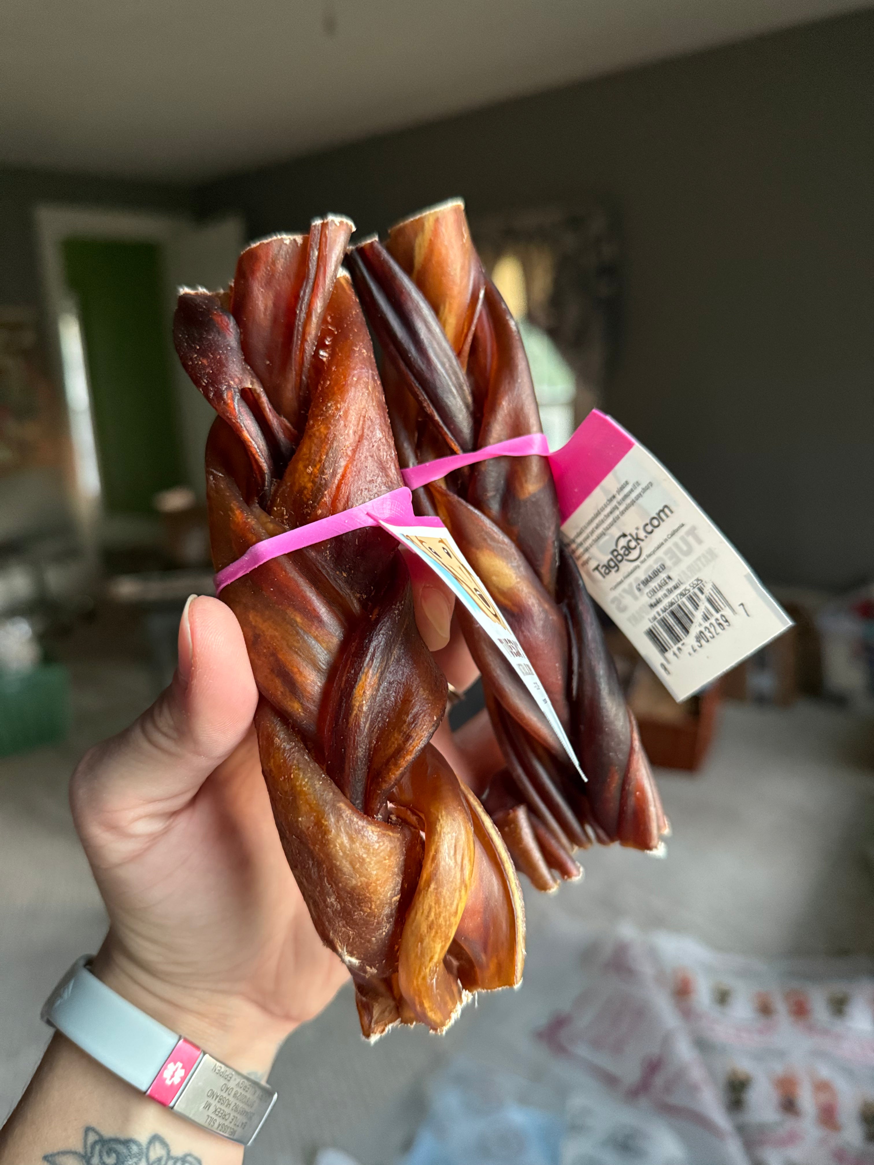 Our Braided Collagen Sticks are less processed and more easily digestible when compared to traditional dog rawhide chews. These Braided Collagen Sticks are made from a layer of tissue called the dermis, which is nutritious (made of about 70% collagen) and has a firm and elastic texture.