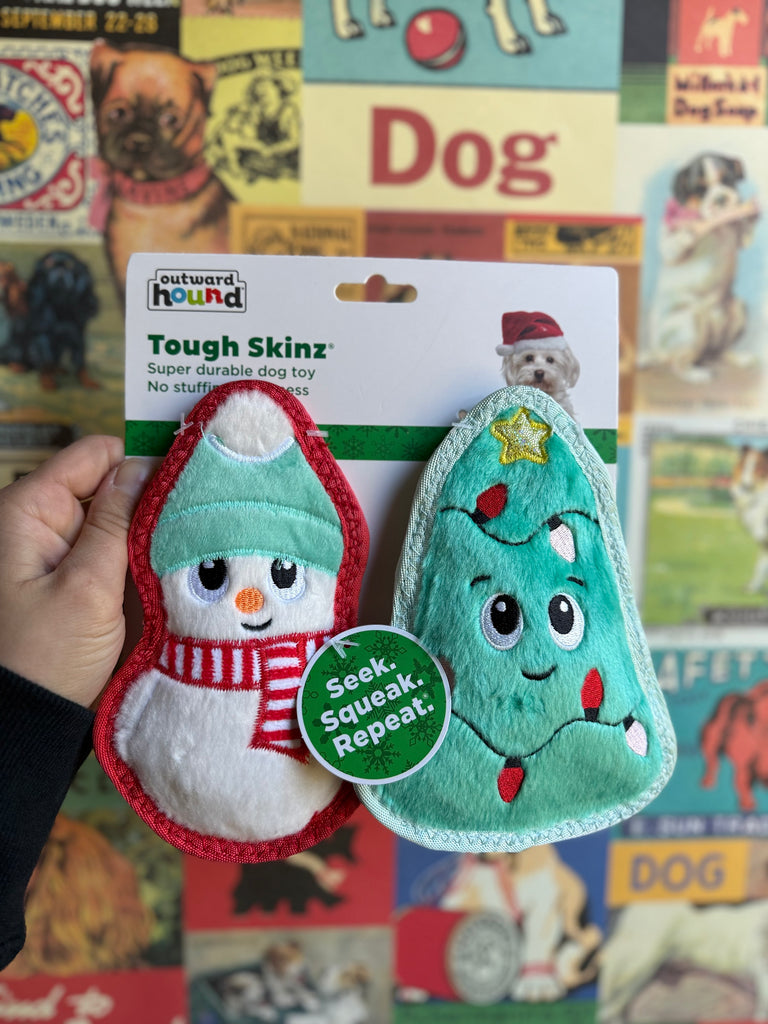These are small but mighty toys! These festive little guys don't have any stuffing, they are made of a squeaker and extra stitched, thicker material for howliday fun!