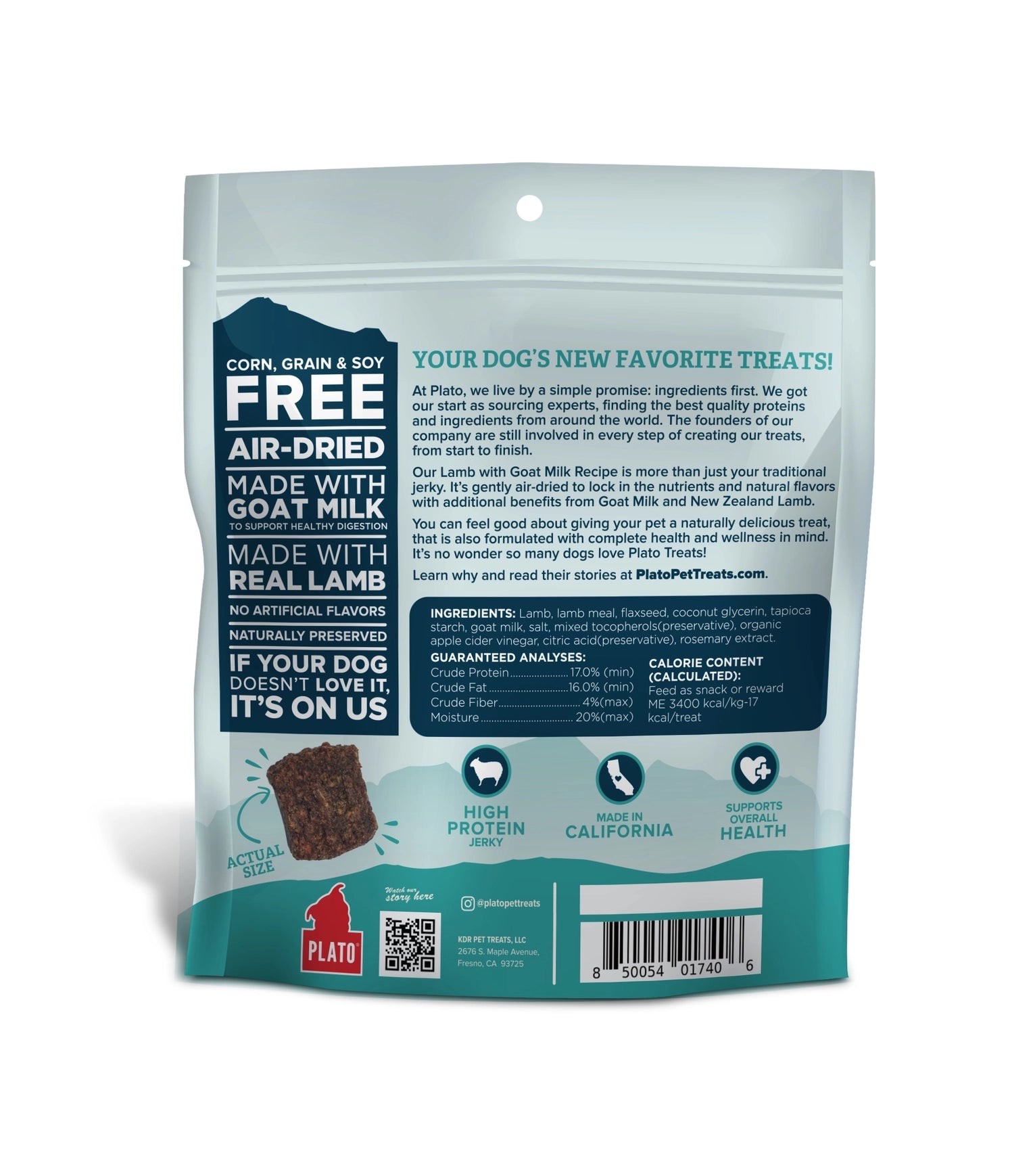 These treats are gently air-dried to lock in the nutrients and natural flavors with additional benefits from Lamb, Goat Milk and flaxseed.