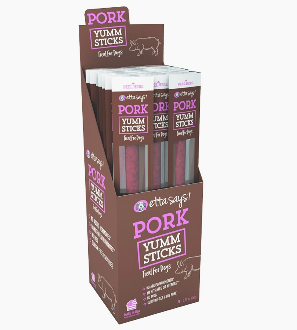 Your pal will sit pretty for the delicious taste of Etta Says! Pork Yumm Sticks Dog Treats. These single-protein treats have nothing but the good stuff for your pup. They’re made with all-natural ingredients, including tasty pork and brown sugar.